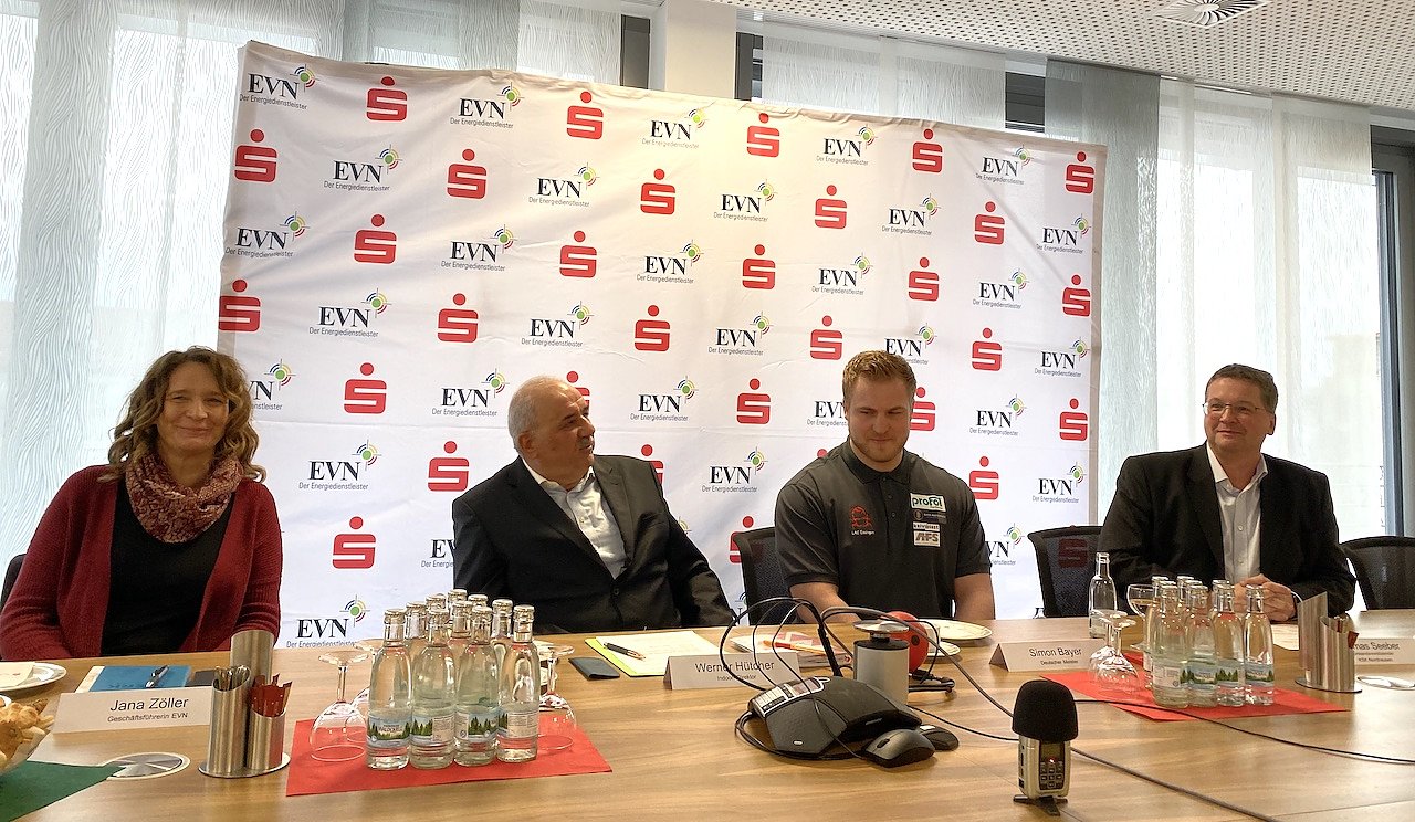 Organisator Werner Hütcher und Simon Bayer umrahmt von den Vertretern der Hauptsponsoren (Jana Zöller, EVN, links) und Thomas Seeber (Kreissparkasse, rechts) (Foto: oas)