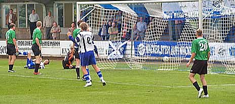 Dann herrschte so ziemliche Funkstille im Albert-Kuntz-Sportpark, in der 43. Minute ein Achtungszeichen. Einen Freistoß aus 22 Meter legte Jens Ludwig auf Tino Steinberg ab, der krachte das Leder mit unglaublicher Wucht in Richtung Tor. Jeder Keeper wäre da machtlos gewesen, nur der rechte Pfosten stand im Wege.
