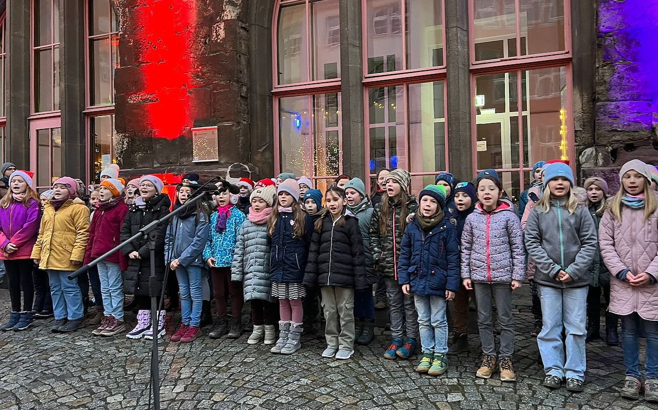 Zu einem Mitsingkonzert hatte der Chor der Staatlichen Grundschule Käthe Kollwitz am vergangenen Freitag auf den Weihnachtsmarkt eingeladen...