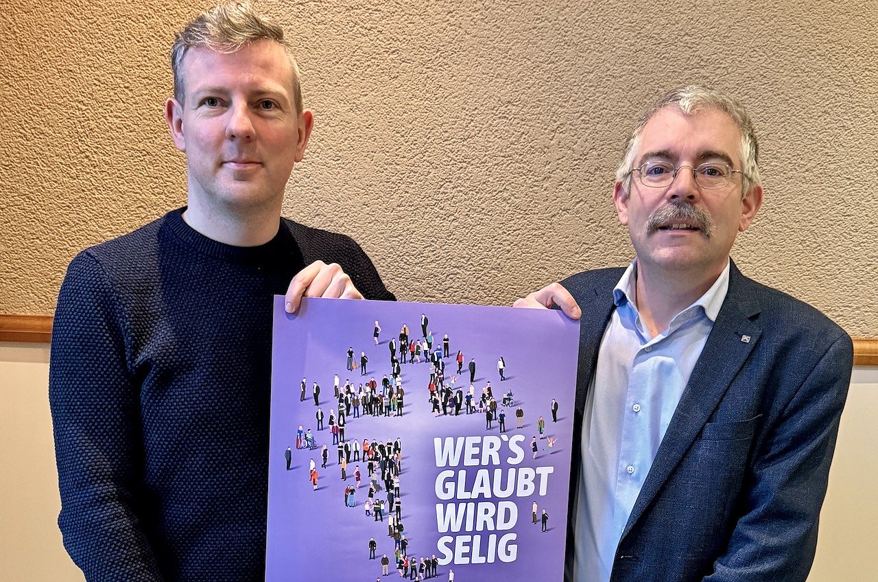 Seit heute ist es offiziell – Wer´s glaubt, wird selig. – ist das Motto des Kreiskirchentages 2024 im Südharz. Der Countdown auf der neuen Micropage seligwerden.de läuft bereits runter. Am 1. Juni feiert der ganze Kirchenkreis in Ellrich rund um die Netzwerk-Kirche St. Johannis unter dieser Überschrift. Gestern konnte Superintendent Andreas Schwarze die druckfrischen Save the Date-Postkarten aus den Händen von Steffen Mund entgegennehmen. Sie sollen an Heiligabend in möglichst vielen Kirchen ausliegen und zu diesem Fest einladen.