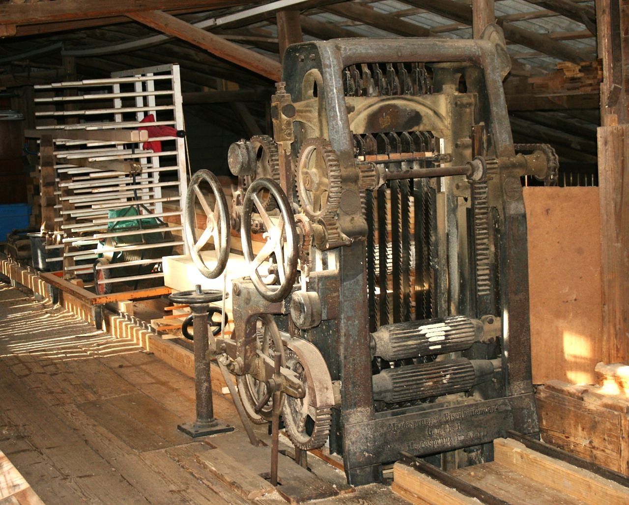 Autor: redDas Sägewerk VH5 (Vertikal-Vollgatter) wurde 1922 im Mägdesprunger Eisenhüttenwerk erbaut. Der Auleber Zimmermann August Miche kaufte das Gatter am 12. August 1930 von Carl Ließmann in Meisdorf im Harz.