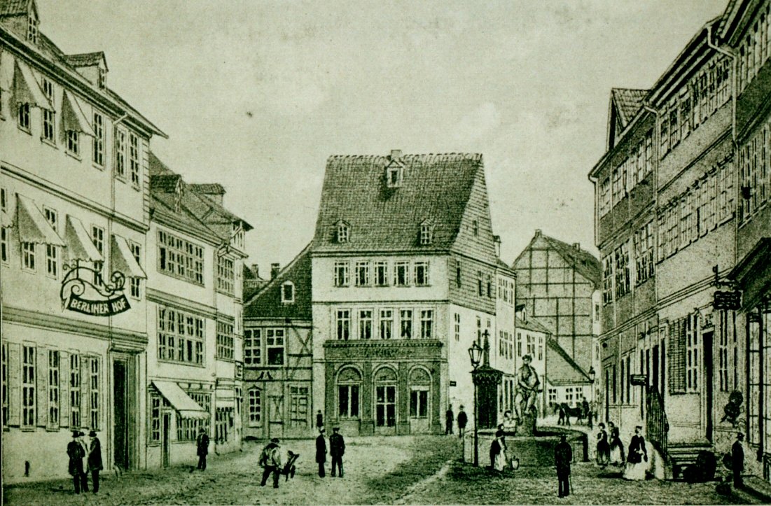 Man sah auch die Figur eines steinernen Neptuns und eines Seepferdchens. Alle waren einstmals die Zierde von Nordhäuser Brunnen. Der Neptun ist verschwunden, der in der Wasserkunst des Königshofes stand, dann im Bauhof, der Seepferdchenbrunnen steht neu gestaltet nahe der Post in einer kleinen Grünanlage. Wo befand sich der Brunnen, in dem die Leda als Sandsteinskulptur aufgestellt worden war? Die alte Ansicht zeigt die untere Rautenstraße, wo man in der Wasserkunst die Figur der Leda erkennt. Schräg gegenüber steht seit 1818 der Gasthof Berliner Hof.