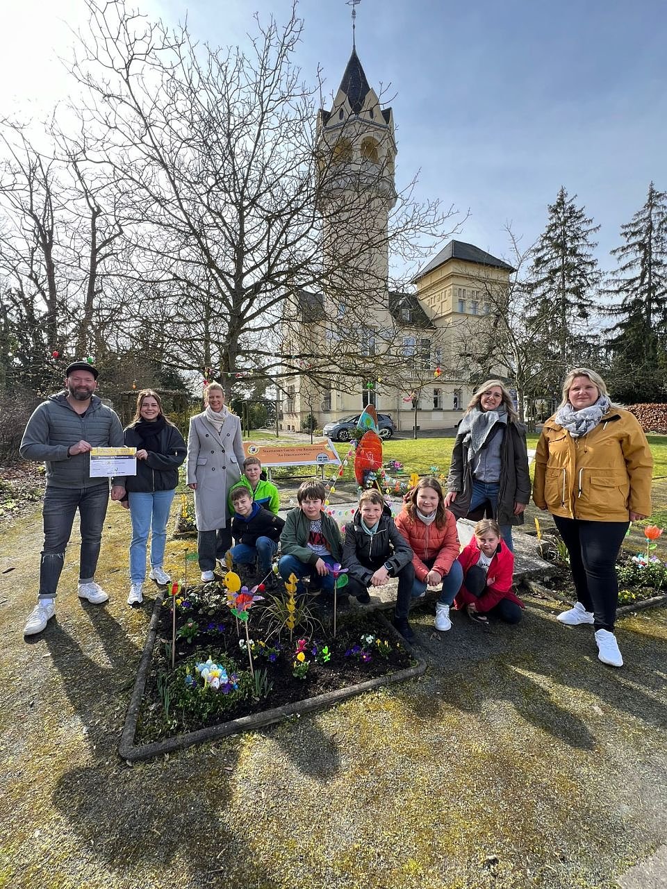 Fleißig bei der Arbeit - auch der Garten des Kunsthauses wurde für das Osterfest vorbereitet (Foto: KJR)