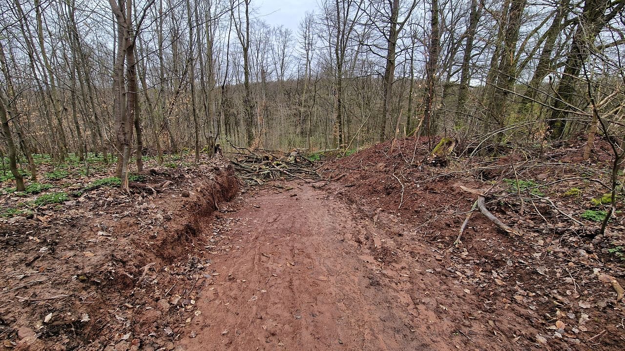 Und so stehen die Wanderer nach der Überwindung der ersten Höhenmeter vor einen aufgerissenen Acker sowie den Spuren schwerer Erdbewegungsgeräte. Wem dann allerdings die Überwindung des "Schlamm-Massels" doch gelungen ist, der wird letztlich im "Hölzchen" mit einem Hindernisparcours beglückt.