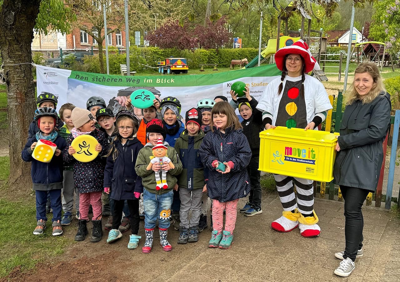 Am Donnerstag, den 25. Aprilhat die Kreisverkehrswacht Nordhausen, vertreten durch Projektleiterin Frau Carolin Sobik eine Move it-Box an die Kita Rappelkiste im Harztor OT Ilfeld übergeben. Move-it ist eine bundesweite Aktion der Deutschen Verkehrswacht. Sie wurde von Verkehrspädagogen entwickelt und dient dem Ziel die Kinder altersgerecht und spielerisch auf die Anforderungen im Straßenverkehr vorzubereiten.