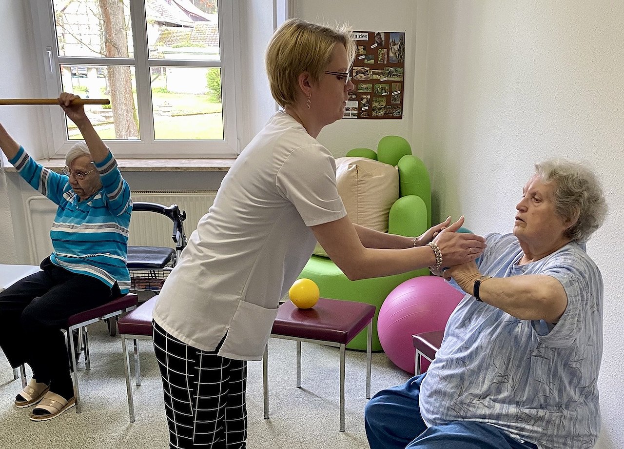 Individuell werden Übungen zum Erhalt und zur Förderung der Mobilität, Balancetraining sowie zur Sturzprophylaxe durchgeführt. Unsere Bewohnerinnen und Bewohner fühlen sich gut aufgehoben und freuen sich über die täglichen Übungseinheiten mit Frau Aderhold.