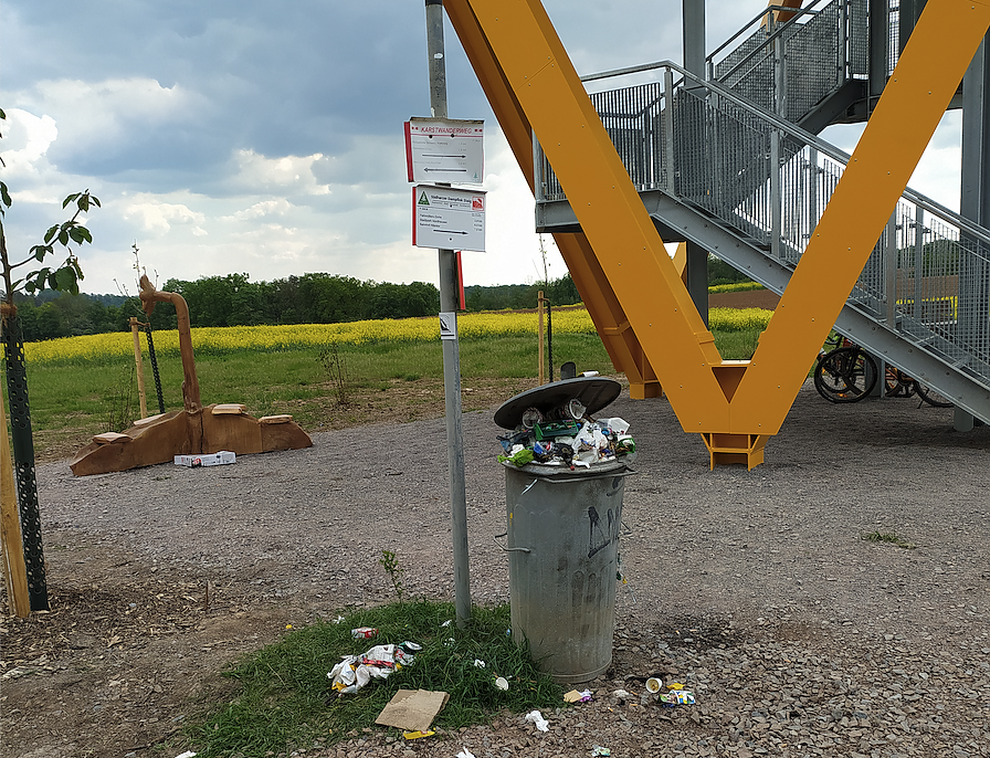 Mit viel Publikum wurde vor kurzem der neue Aussichtsturm über Rüdigsdorf eröffnet. Als Anlaufpunkt für Besucher scheint der über die vergangenen Tage schon viel Zuspruch erhalten zu haben, zu sehen vor allem am übervollen Mülleimer. Ein nnz-Leser fragt nun: wer räumt da eigentlich auf?