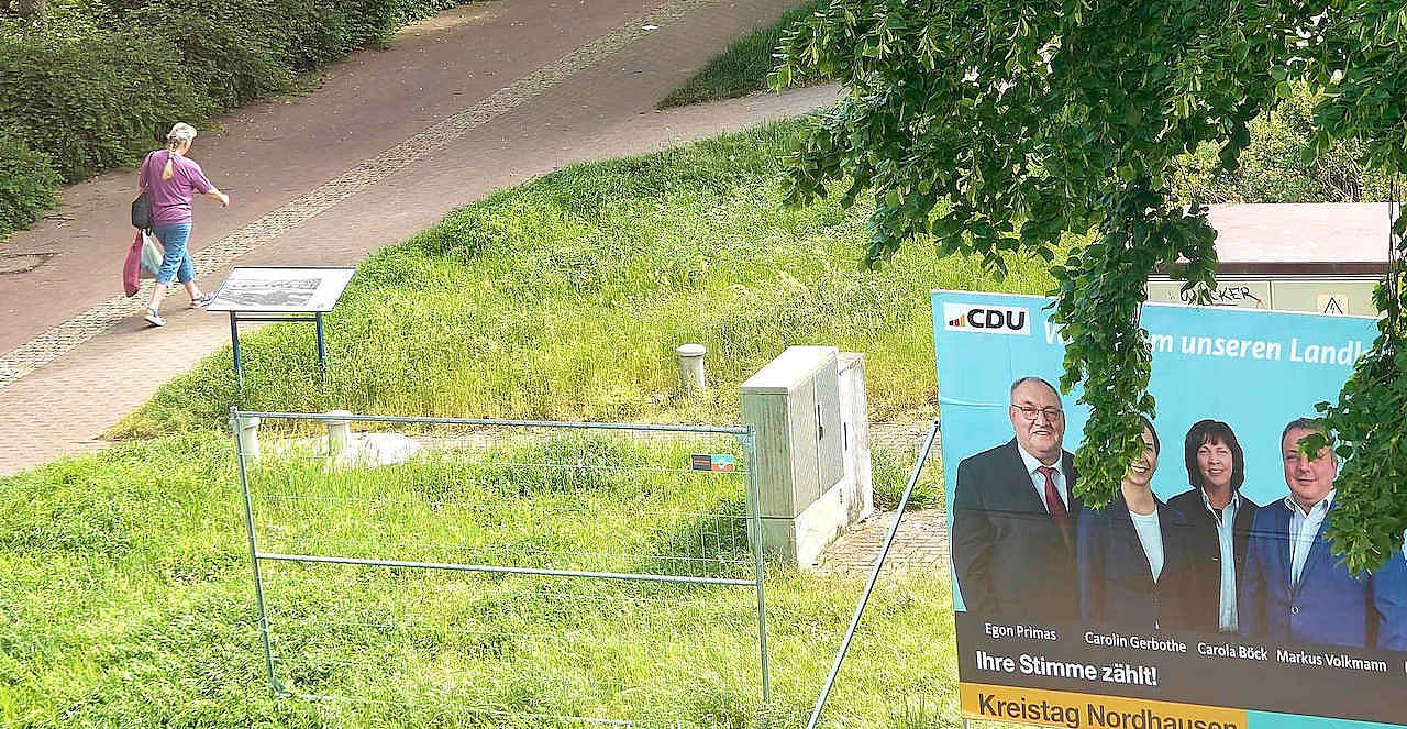 Wie wir sehen, sehen wir nichts - jedenfalls nicht mehr den Großaufsteller der SPD, der bis gestern noch neben dem der CDU am August-Bebel-Platz stand. Geblieben ist die Halterung. Was ist nur mit einigen Leuten los in dieser Stadt?...
