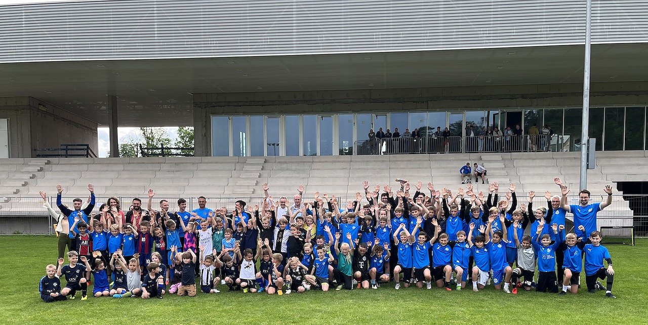 Wichtig war allen Rednern und Anwesenden heute, dass vor allem die Kinder und Jugendlichen hervorragende Bedingungen vorfinden, um ihren geliebten Fußballsport zu betreiben. Einige der kleinen Messis, Kanes und Mbappes waren denn heute auch zum Training gekommen und ließen sich gern auf dem obligatorischen Gruppenfoto vor der neuen Tribüne verewigen, während ihre Eltern und alle anderen Gäste zu Rostbratwürsten und freien Getränken eingeladen waren.
