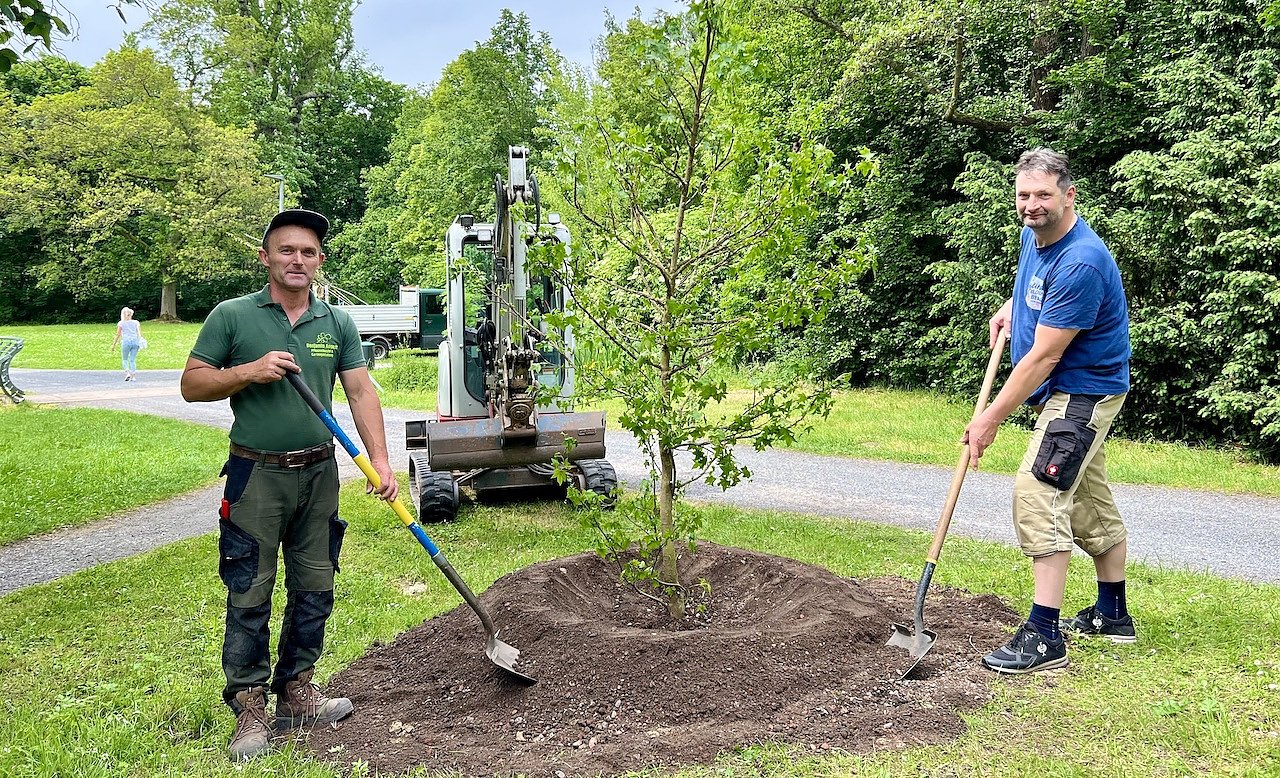 Zur Erhaltung und Erhöhung der Artenvielfallt wurden 23 verschieden Baumarten gepflanzt. Wir achten darauf, Baumarten zu verwenden die den Umweltbelastungen, z.B. Trockenstress, angepasst sind. Es werden aber auch Bäume die den Stadtpark über Jahrzehnte geprägt haben, Blutbuchen, gepflanzt, erklärt Stadtförster Axel Axt. Zur Verbesserung der Standortbedingungen wurden große Baumscheiben angelegt und mit Pflanzsubstrat befüllt.