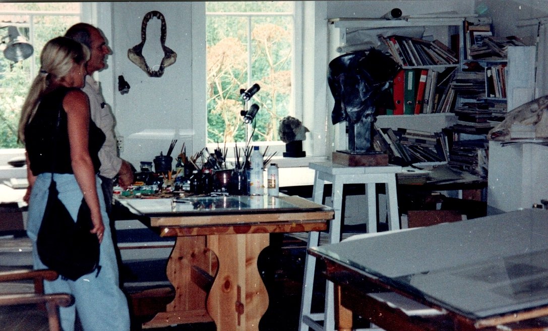 Man nennt diese erhabene Baumgestalt auch den Koloss von Utterode, ein Naturdenkmal besonderer Güte. Sie hat die Form einer Kandelaberlinde, war vielleicht sogar eine Tanzlinde. Manche sprechen von einer Gerichtslinde. Für Scharr ist das ein geheiligter Ort, kein Besucher kann sich der Sogwirkung dieses Baumes entziehen. Um das Baumdenkmal standen in spannungsvoller Anordnung Figuren aus Eisen auf Steinsockeln, von Scharr aus Metallschrot geformt. Darüber würde er uns bei einem weiteren Besuch aufklären. In den Atelierräumen nahm uns dann die Fülle der Eindrücke gefangen. Wir wollten gern wissen, wie sein Weg zur Kunst gewesen war.