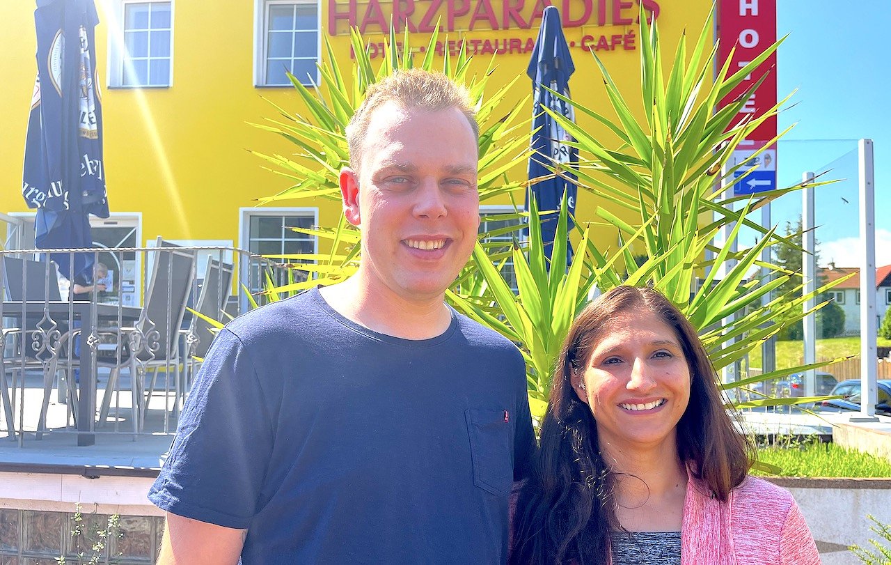 Mirko und Marisol Jüptner strahlen mit der Sonne um die Wette: In ihrem "Harzparadies" haben sie ihre Bestimmung gefunden (Foto: oas)