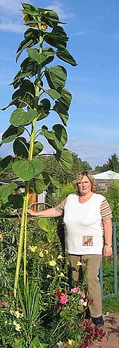 Die stolze Sonnenblume hat eine Höhe von 3,90 Meter. Sie ist im Garten von Frau Rilli in der Gartensparte Dahlie in Nordhausen gewachsen.