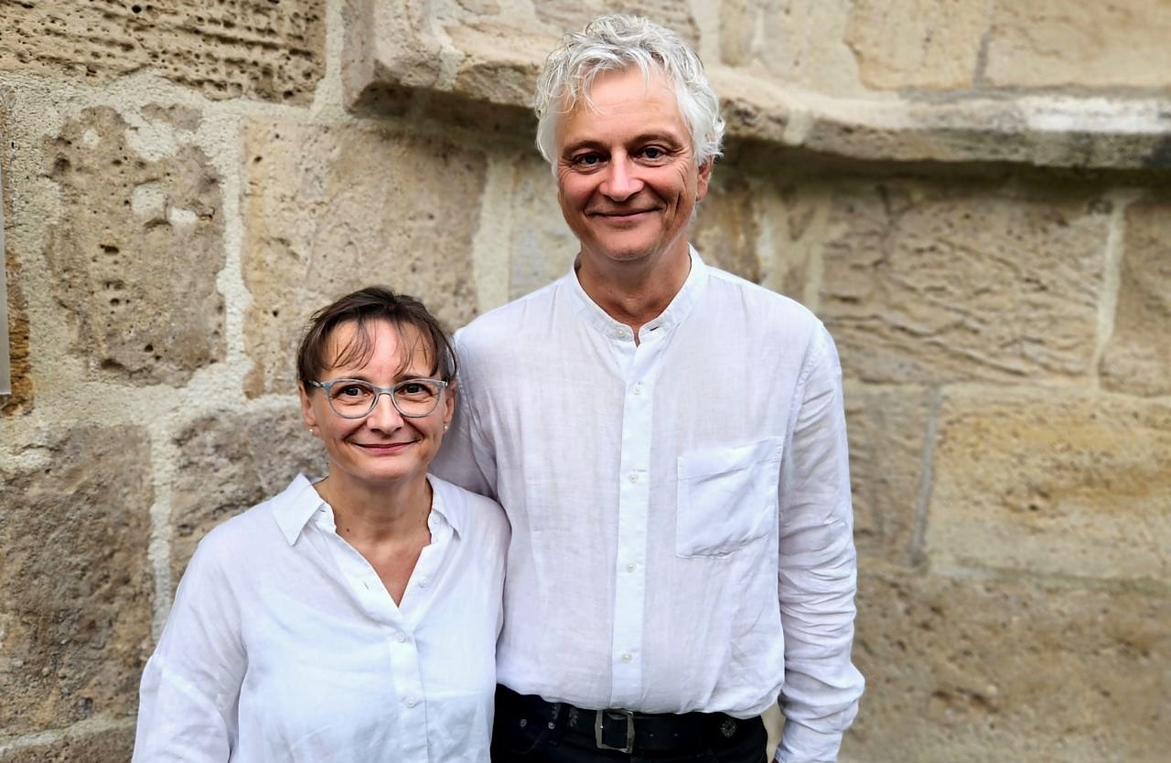 Petra und Dirk Lehner Anfang September vor der St.-Marien-Kirche in Bleicherode (Foto: Evangelischer Kirchenkreis Südharz)