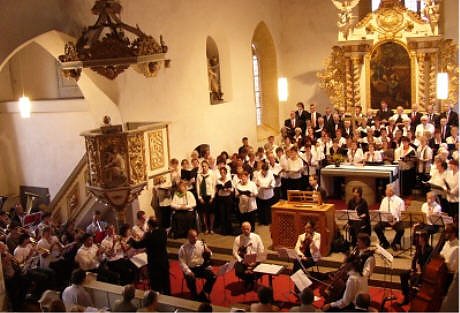 Am Nachmittag um 17 Uhr begrüßte Superintendent Michael Bornschein die Gäste und Zuhörer in der gut gefüllten Kirche zum Abschlusskonzert. Es wurden Werke von Heinrich Schütz, Felix Mendelssohn-Bartholdy, Camille Saint-Saens und anderen Komponisten vorgetragen. Die Chöre und Instrumentalisten ernteten begeisterten Beifall.