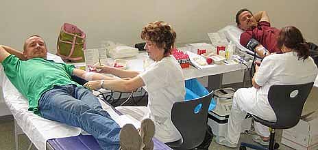 Carsten Schattmann und Dieter Köhler (hinten) von der Kreisverkehrswacht nutzten gestern die Möglichkeit zum Blutspenden. Für Dieter Köhler war es das erste Mal. Wie er der nnz sagte, soll die Blutspenden-Premiere nicht die letzte Aufführung gewesen sein.