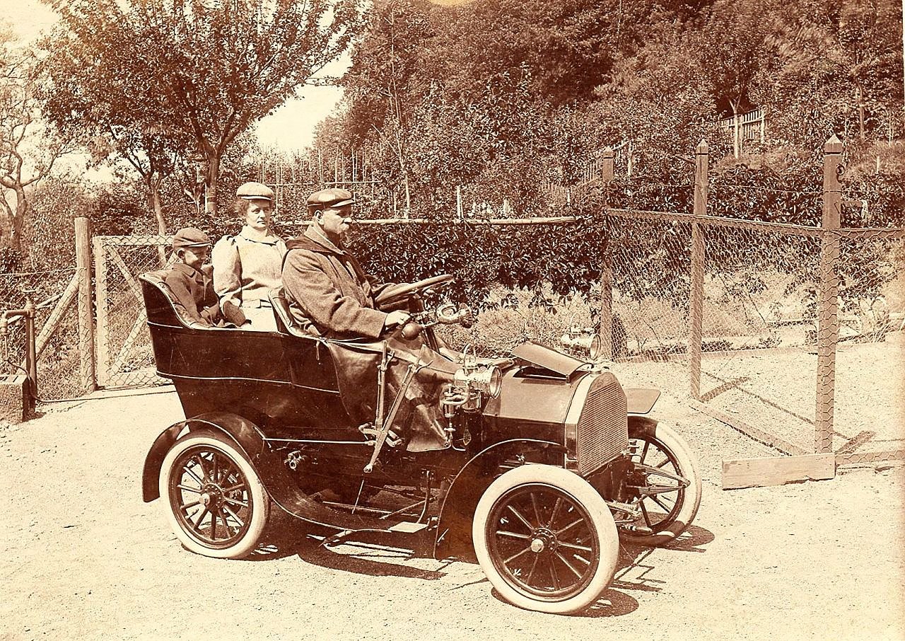 Zu den ersten, die im Landkreis Nordhausen 1909 ein Motorwagen hatten gehörte der Ilfelder Herr Friedrich Kampmann. Das Foto zeigt Herrn Kampmann damals Rentier geb. 1859 fuhr ab 1909 einen Luxusmotorwagen des Typs Rolls Royce mit 10 PS Zweizylindermodell, Baujahr 1904 (Foto mit Frau Martha und Sohn Henning).