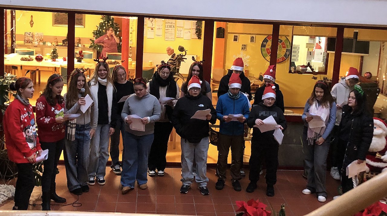 Heute Nachmittag führten die Schüler der Klasse 8b der Regelschule G.E.Lessing im Seniorenheim Haus am Park ein kleines Weihnachtsprogramm, bestehend aus Weihnachtsliedern, Gedichten und Geschichten, auf...