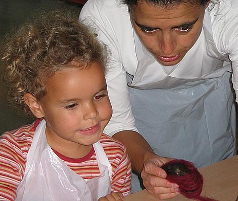 Rasch fand die Aktion einen großen Zuspruch und die 21 begeisterten Mütter und Kinder zauberten unter fachkundiger Anleitung Blüten, Türsteine, allerlei Rundgefilztes, Mustervariationen, sowie Filzschnüre. Mitarbeiterin Elli Gösel und ihr Team hoffen nun, auch weitere Interessierte in den Bann des Filzens zu ziehen.