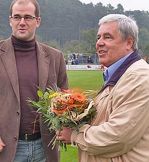 Doch erst einmal zur Halbzeitpause. Da ehrte Bürgermeister Matthias Jendricke (SPD) ein Wacker-Urgestein. Günther Beck, die gute Seele des Vereins, hatte bereits am 3. Oktober im Nordhäuser Theater eine Auszeichnung entgegen nehmen müssen. Doch da war Beck im Bus und feierte mit seiner Mannschaft das 3:6 von Gera. Heute wurde der Mann nun nachträglich geehrt. Und der Autor dieses Beitrages kennt Günter Beck seit Jahren, saß jahrelang mit ihm im Sprecherturm des AKS und kennt die einmalige Verbundenheit des G.B. zum Verein. Der Autor konnte teilhaben an Sternstunden, aber auch am Abstiegsleid des Vereins, das auch immer eine Sternstunde und das Leid des Günter Beck war und ist.