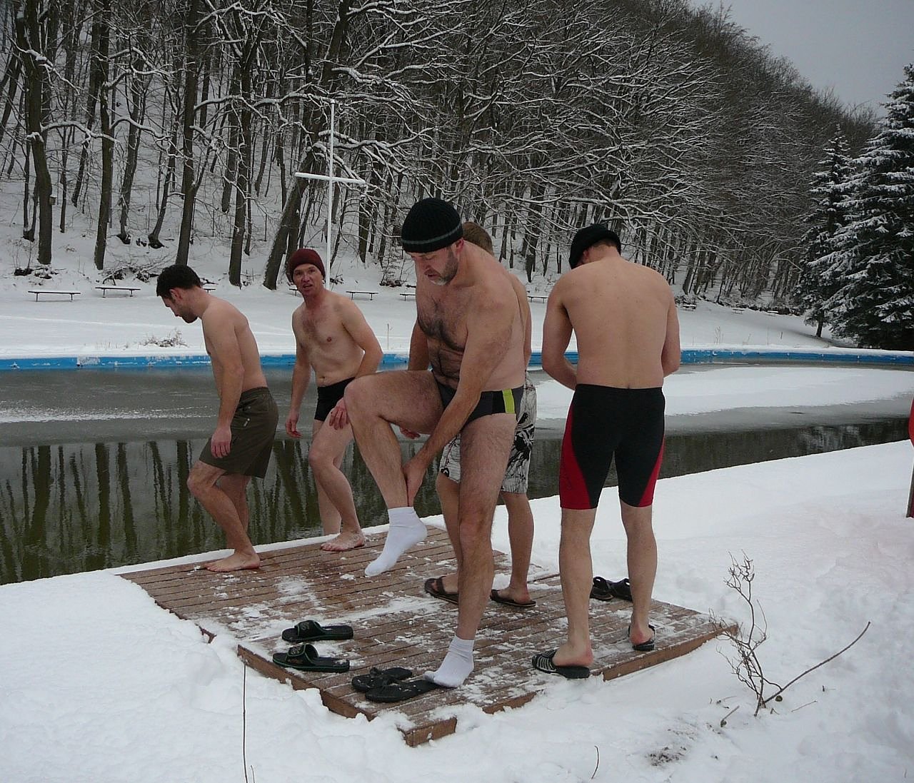 Der Winter nimmt erst Anlauf und so wird der Sprung in die kühlen Fluten nach dem Aufwärmen in der Saunahütte ein Genuss für alle Wagemutigen. Für Spaß und Unterhaltung sorgen gleichzeitig die Männerballette verschiedener Karnevalsvereine, die sich zum Kräftemessen verabredet haben.