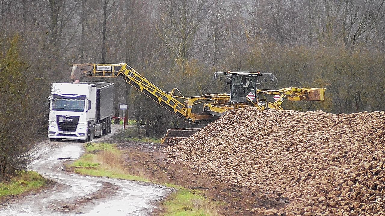 In der Goldenen Aue hat die Rübenabfuhr begonnen. Es waren zwischen Berga und Kelbra mehrere LKW damit beschäftigt...