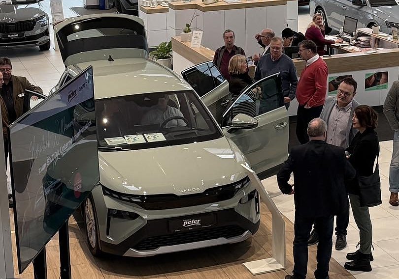 Wir beginnen die Verwandlung am Freitagvormittag. Da wurden Unternehmerinnen und Unternehmer zu einem automobilen Frühstück eingeladen. In dessen Mittelpunkt stand neben den Offerten auf den Tischen ein neuer Skoda - der Elroq.