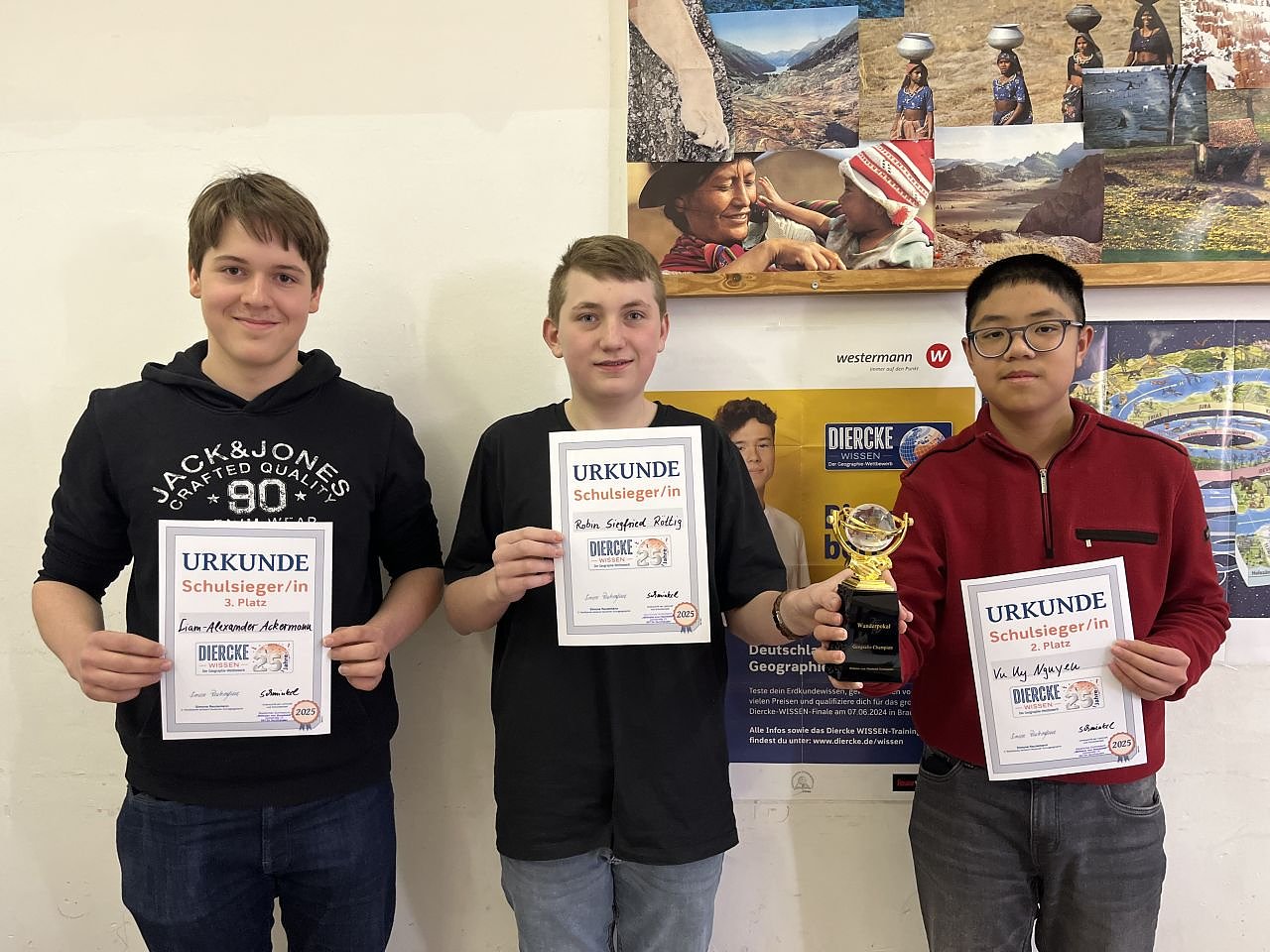 Autor: redDer Vorjahressieger Vu Uy Nguyen belegte dieses Jahr einen fulminanten 2. Platz und überreichte den sichtlich stolzen Robin den schulinternen Wanderpokal in der Geographie. Liam- Alexander Ackermann freut sich sichtlich über seinen hervorragenden erreichten 3. Platz.