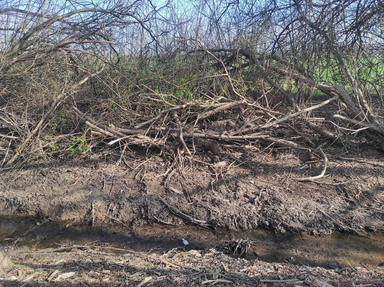 Sieht so ein Uferbereich aus, nachdem ein Gewässerunterhaltungsverband (genaue Bezeichnung lassen wir zur Güte weg) die Aufgabe wahrgenommen hat, genau diesen Bachlauf zu zerstören? Viel mehr bietet sich der zurückgelassene Unrat, Müll und vor allem das trockene Holz in den Sommermonaten prima zum Entflammen an.