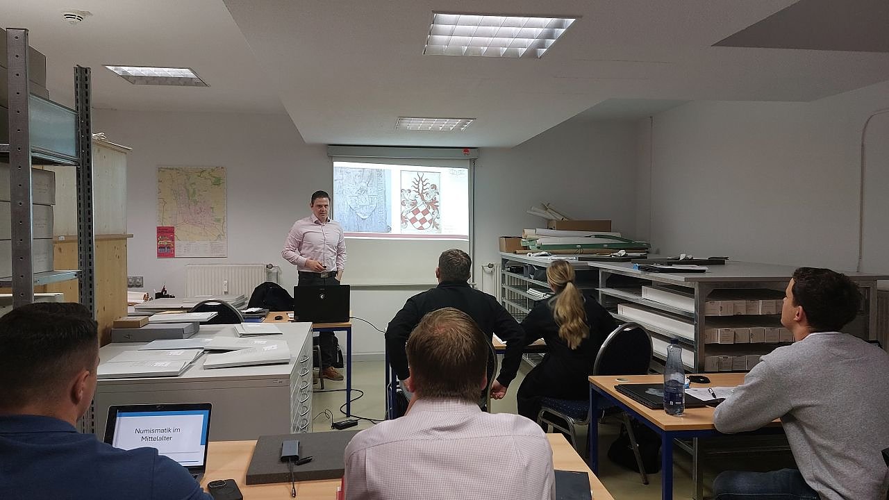 Unverzichtbar dafür ist bis heute die Einübung in das unverzichtbare Werkzeug des Historikers: Siegel- und Schriftkunde, Heraldik und Münzgeschichte. Daneben standen natürlich auch Besuche in den Museen – der Sonderausstellung Dienstverpflichtet... – u.a. Sehenswürdigkeiten der Stadt auf dem Exkursionsprogramm.