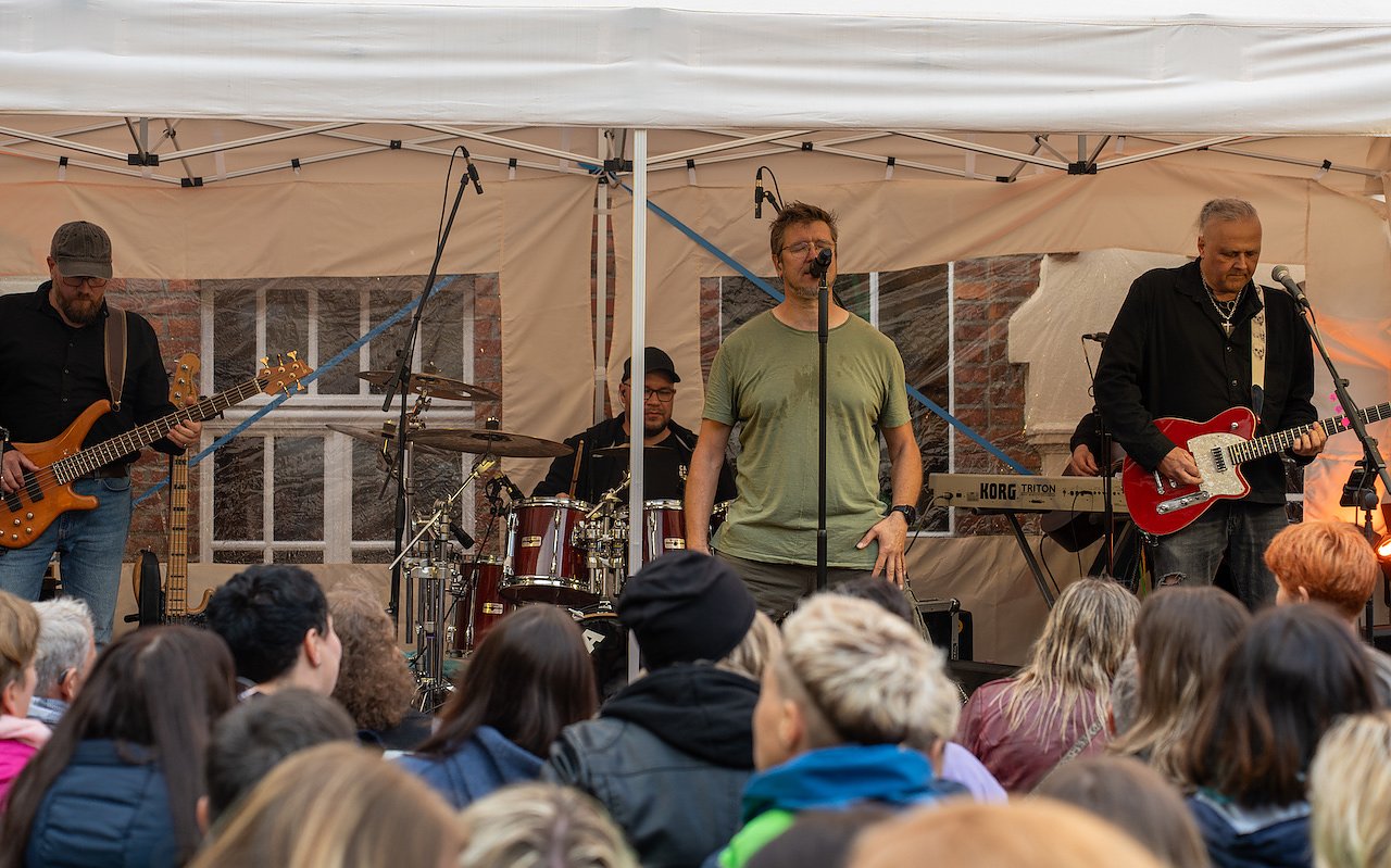 Sie führten das Publikum auf eine musikalische Zeitreise, die Erinnerungen an das Musical STARS, Werke von Bertolt Brecht sowie die gesamte Bandgeschichte wachrief. Trotz des anfänglichen Regens hielt die Band bis zum Ende durch und sorgte für einen Abend voller Freude und Gemeinschaft. Leider war die Zeit viel zu kurz, um alle Zugaben zu geben – doch die Begeisterung war deutlich spürbar.