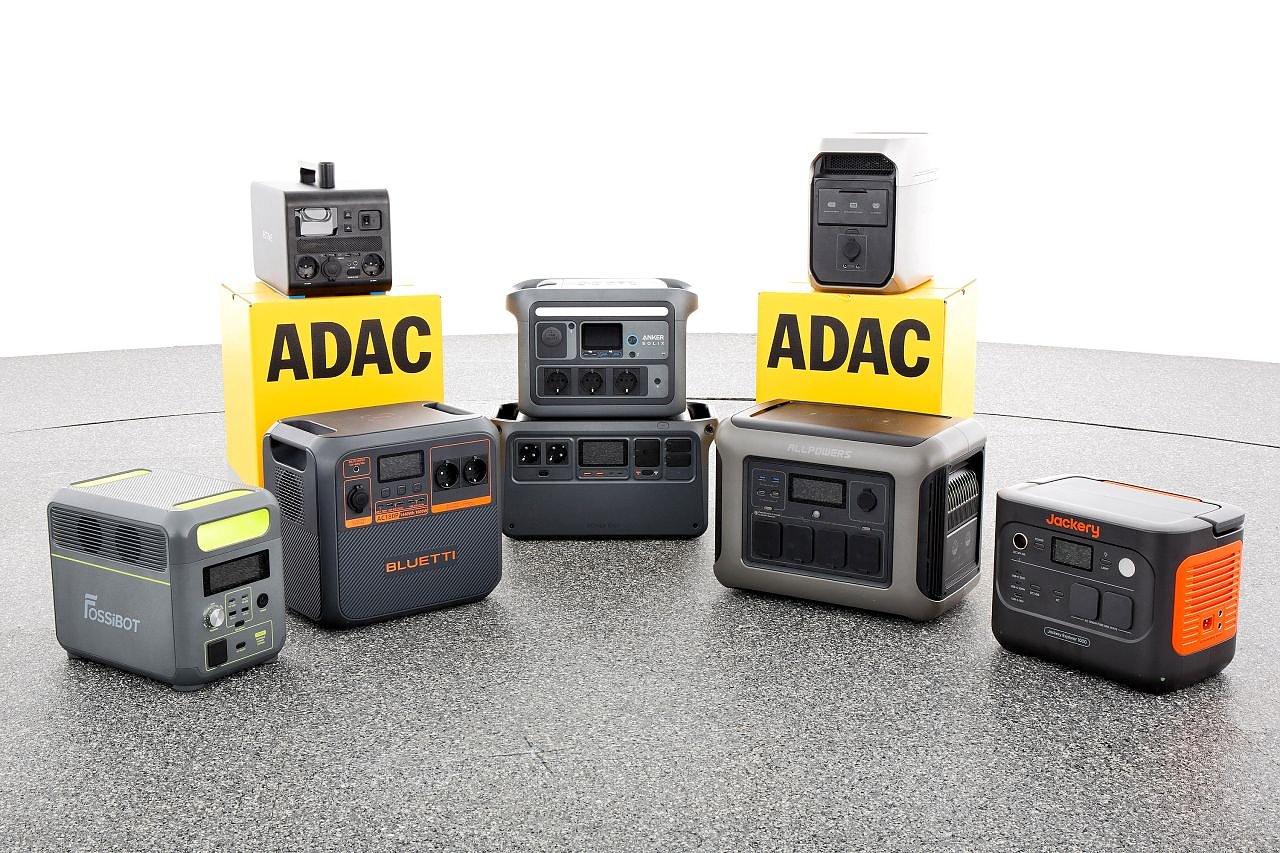 Der ADAC hat in einem Test acht Produkte mit einer Kapazität zwischen 750 und 1500 Wattstunden (Wh) unter die Lupe genommen. Getestet wurden neben den Funktionen und der Bedienung der Geräte auch die Sicherheit sowie die Nutzerfreundlichkeit der Apps und Anleitungen.
