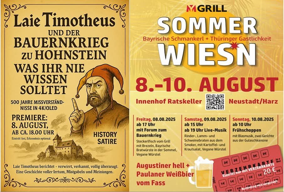 Vom Liebesleben im Mittelalter bis zu den theologischen Ohrfeigen zwischen Luther und Müntzer. Letzterer, streitbar und gottesfürchtig, wird mit Würde und Feingefühl ins Rampenlicht gestellt – kein Revoluzzer-Spaß, sondern eine ehrliche Hommage an einen Mann mit Haltung.