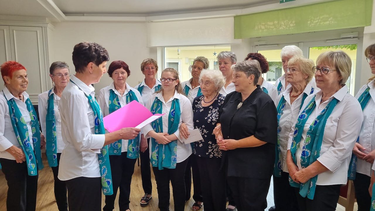Natürlich ließen es sich die Frankenhäuser Sängerinnen nicht nehmen und gratulierten ihr, nicht nur musikalisch, zum Jubiläum.