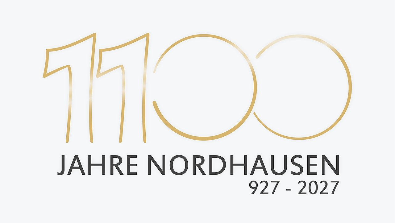 In Zusammenarbeit von Stadtverwaltung und Beirat wurde der Öffentlichkeit das Logo für das Festjahr präsentiert. Die goldene Farbe hebt das besondere Jubiläum der ehemaligen Reichsstadt hervor und bildet darüber hinaus die Verbindung zur Goldenen Aue, jener Kulturlandschaft vor den Toren der Stadt, die diese reich und bekannt machte. Der goldenen Zahlen werden als Gegengewicht ein minimalistisches Design mit filigraner Linienführung gegenübergestellt. Hier setzt sich die moderne Stadt Nordhausen in Szene, so Barbara Rinke. Die handgezeichneten Ziffern mit Anlehnung an die historischen Zahlen der Rathausuhr stehen im Kontrast zum klaren geradlinigen Schriftsatz, ergänzt Beiratsmitglied Uwe Peters, der die alten Ziffern der Rathausuhr Ende der 1980er Jahre erneuerte. Eine Silhouette der Stadt bietet die Möglichkeit, das Logo zu ergänzen.