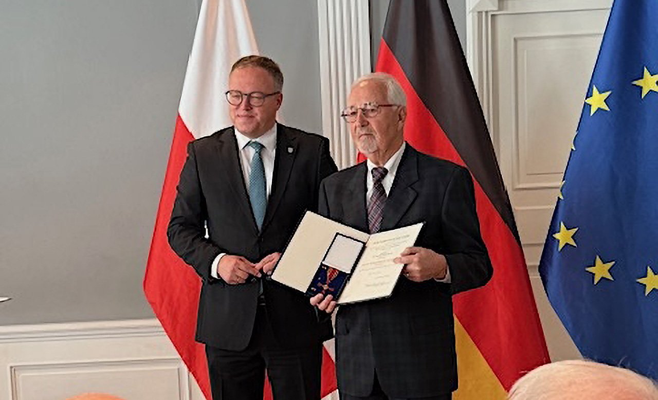 Ministerpräsident Mario Voigt zeichnet Dr. Dieter Kornmann mit dem Verdienstorden aus (Foto: Wilfried Rossmel)