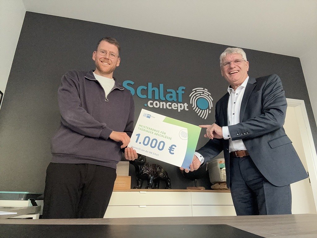 Zu den geförderten Absolventen der aktuellen Auszahlungsrunde gehört Florian Czischke, der die Fortbildung zum Betriebswirt (Geprüfter) nach dem Berufsbildungsgesetz – Master Professional in Business Management erfolgreich abgeschlossen hat. Er ist im Beratungsunternehmen Schlafconcept in Erfurt tätig, das er gemeinsam mit seinem Schwiegervater führt. Sein Abschluss zum geprüften Betriebswirt ist im Deutschen Qualifikationsrahmen (DQR) der Stufe 7 zugeordnet und damit mit einem Masterabschluss vergleichbar. Für mich ist der Meisterbonus eine wichtige Anerkennung für meine zielgerichtete Höhere Berufsbildung zum Betriebswirt, sagt Florian Czischke. Die Weiterbildung eröffnet mir neue berufliche Perspektiven und motiviert mich zusätzlich, mich noch stärker im Schlafconcept einzubringen.