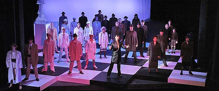 Damit ist eigentlich auch schon gesagt, was die zweieinhalb Stunden Musicalkost im Theater brachten: eine dynamische und sauber inszenierte Aufführung mit einem bestens aufgelegtem Loh-Orchester, einem fantastischen Chor, einem sehenswerten Ballett und einer ganzen Reihe großartiger Solisten. Allen voran Femke Soetenga, die spiel- und stimmgewaltige Holländerin in der Hauptrolle der Florence Vassy. Und schon sind wir mittendrin in einer Handlung, die einer Schachpartie gleicht: viele überraschende, manchmal hinterhältige und stets wohlüberlegte Intrigen und Winkelzüge.