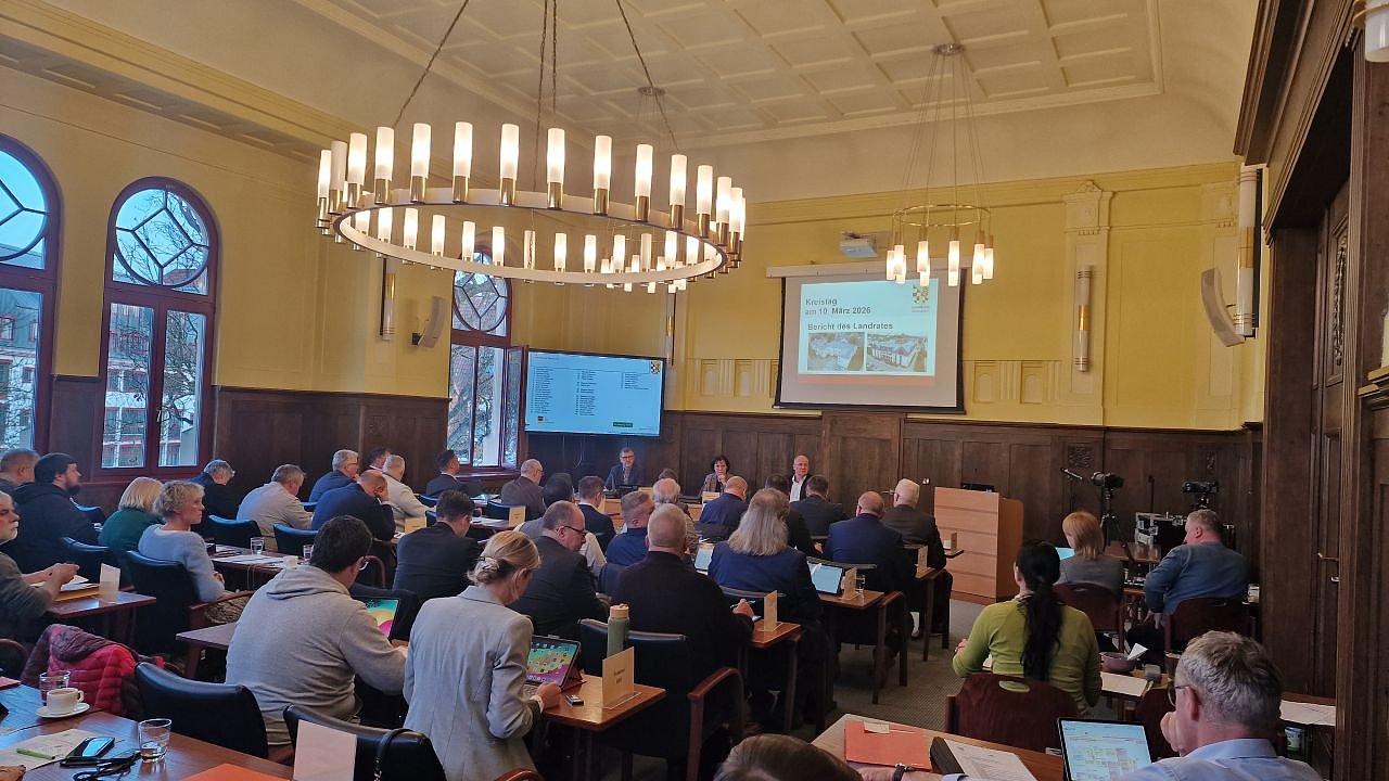 Weitere Fragen gibt es nicht, es geht weiter in der Tagesordnung und mit dem Bericht des Landrates. Jendricke beginnt mit dem Blick auf die Kriegsereignisse in der Welt und die Verwerfungen an den Rohstoffmärkten. Das werde den Bürger wie den Landkreis berühren, die Auswirkungen werden bis in die regionalen Wirtschaftskreisläufe reichen.