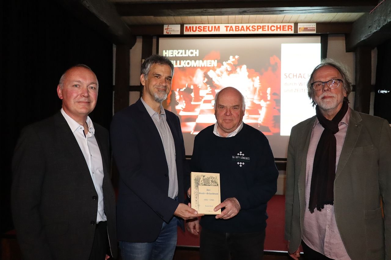 Autor: redGemeinsam mit Oberbürgermeister Kai Buchmann, Dirk Schimm, 2. Beigeordneter des Landkreises Nordhausen und Vertreter des SC 1951 Nordhausen sowie Konrad Reiß, Gründer und Leiter des Schachmuseums Löberitz, eröffnete Jürgen Rennebach als Museumsleiter am 14. März die neue Ausstellung Schach - Durch Welten und Zeiten.