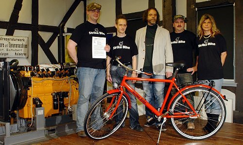 Das Museum Tabakspeicher ist um einen Zeitzeugen reicher. Das letzte Strike Bike wurde heute an Jürgen Rennebach überreicht. Es erinnert an den vergangenen Sommer, wo die Mitarbeiter des insolventen Fahrradherstellers Bike Systems ihr Werk besetzt hielten. Von den Nordhäusern bekamen sie große Solidarität zu spüren. Mit der Produktion des Strike Bike wollten die 135 Beschäftigten noch einmal zeigen, daß Fahrradproduktion am alten Standort möglich ist.