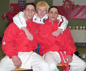 Dabei gelang den Neumann Brüdern aus Sondershausen das Kunststück in ihren Disziplinen jeweils Platz 1 und 2 zu belegen und sich die Titel brüderlich zu teilen. Im Bild ist Carsten rechts und Steve links. In der Mitte Martin Kirchner, der dritter wurde.