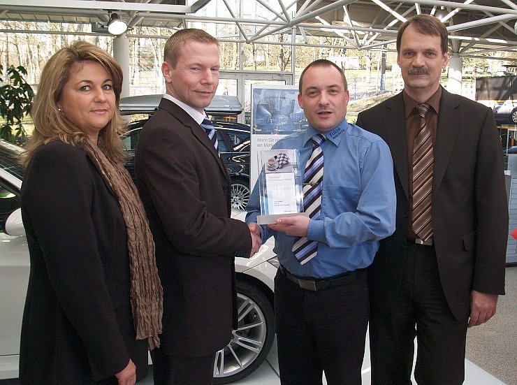 Dafür gab es heute die BMW Schnellservice Trophy, die in Nordhausen von Uwe Mirschel aus der Vertriebsregion Deutschland Ost an den Leiter After Sales Ralf Schmidt überreicht wurde (siehe Foto). Autohaus-Chefin Steffi Fritze: Wer heute ein Premium-Automobil fährt, darf von uns auch einen Premium-Service verlangen. Dafür sorgen die gut ausgebildeten Mitarbeiter mit modernster Diagnose- und Reparaturtechnik.