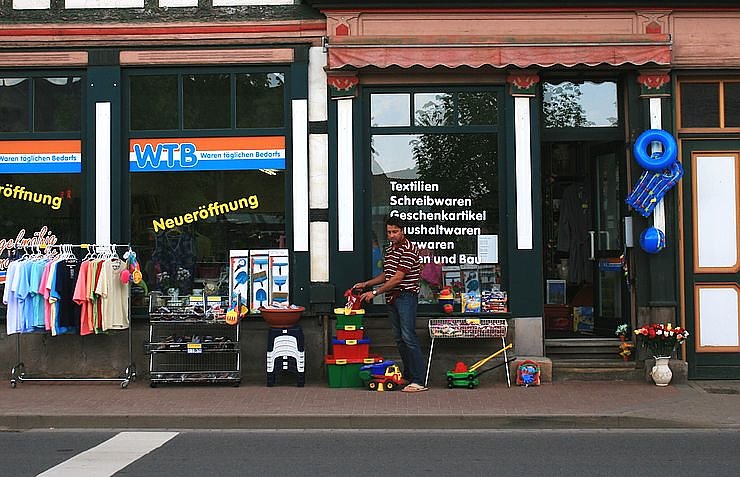"Es ist ein gutes Bild für das Zentrum, dass der "WTB-Markt" hier einen Platz gefunden hat", sagte Bürgermeister Matthias Ehrhold bei der Eröffnung der Verkaufsstelle. Nach mehreren Monaten Leerstand haben Sascha Kranga aus Nordhausen und seine Mitarbeiterin Ellen Stengler aus Ellrich eine Marktlücke gefunden und mit viel Arbeitsaufwand dieses Geschäft eingerichtet. Vorher war hier die "Reisewelt Ellrich" von Karola Mertzdorff, die nun einige Meter weiter westlich in der Straße "Zwischen den Toren" ein neues Domizil hat.