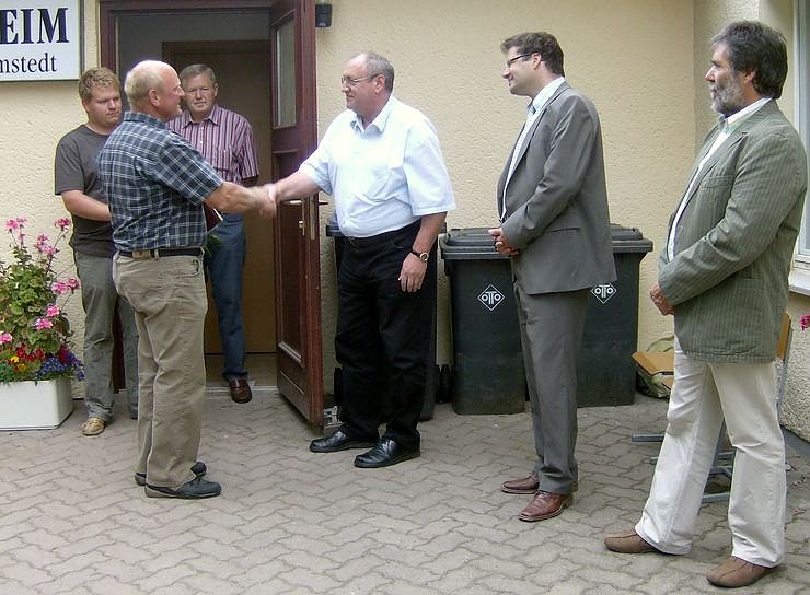 Der Bürgermeister der Gemeinde Kehmstedt, Helmut Herntrich, und mehrere Mitglieder des Vereins waren bei der Übergabe des Schecks zugegen. In seinen Worten bedankte sich der Bleicheröder Bürgermeister Frank Rostek auch bei dem anwesenden Landtagsabgeordneten Egon Primas für dessen Unterstützung bei der Bereitstellung der finanziellen Mittel. Die Zuwendung in Höhe von 2000 Euro ist zweckgebunden als Zuschuss im Rahmen der Durchführung der Festwoche anlässlich 100 Jahre organisierter Sport in Kehmstedt bestimmt, die heute beginnt und bis 6. Juli 2008 andauert.