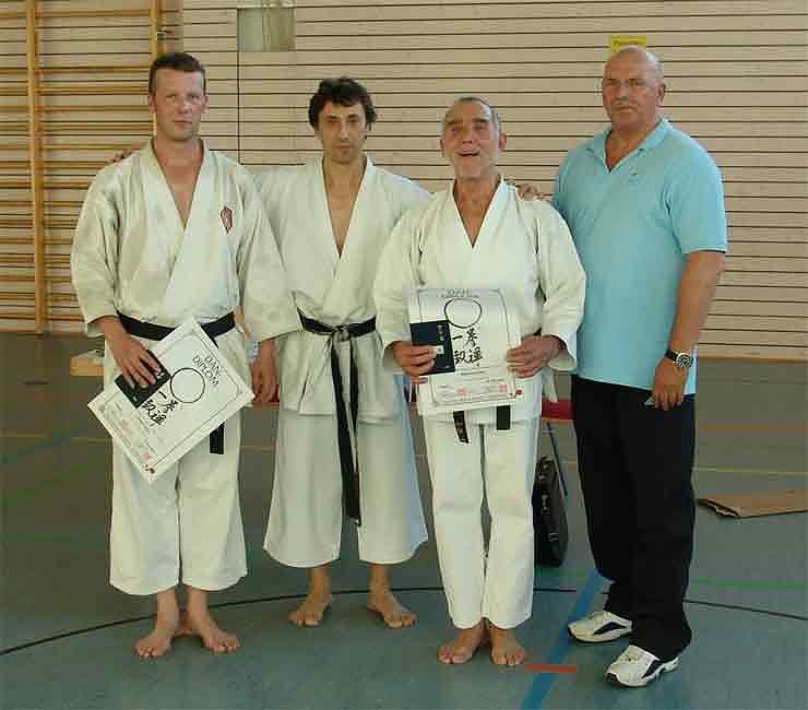 Die erste Prüfung fand in Wuppertal statt. Die Prüfungskommission aus Rudolf Riegauf (6. Dan) und Thomas Prast (4. Dan) prüfte Egbert Gudlat zum 3. Dan. Nach anstrengenden Vorführungen, die wirklich keinen Programmpunkt des Prüfungsprogrammes aussparten und Egbert alles abverlangten, verkündeten die Prüfer das Ergebnis: Bestanden! Sie äußerten sich sehr zufrieden mit den gezeigten Leistungen.
