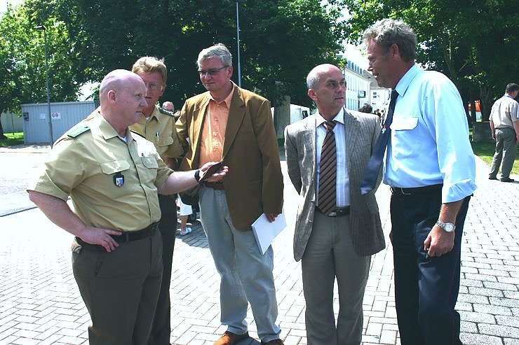 Im Anschluss besuchte Grund auch in diesem Jahr den Tag der offenen Tür bei der Polizeidirektion (PD) Nordhausen. Nach einem Gespräch mit dem Leiter der PD, Uwe Köppen nutzte er die Gelegenheit und informierte sich zum Brandgeschehen auf dem Gelände der FH Nordhausen. Gesprächspartner war der Kreisbrandinspektor Erich Etzrodt. Manfred Grund hatte als Beigeordneter im Eichsfeldkreis zu Anfang der 90-er Jahre vier Jahre Verantwortung für den Brand- und Katastrophenschutz getragen und zeigte sich gut informiert zur Arbeit der Einsatzkräfte.