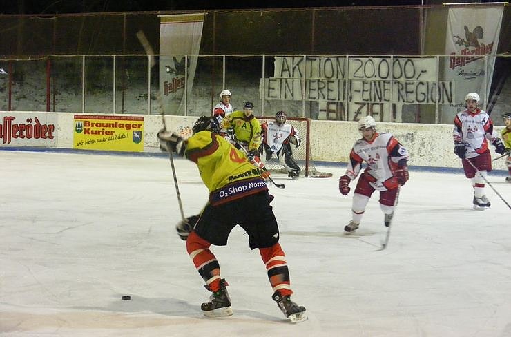 Waren auch in der vergangenen Saison zu Gast im Wurmbergstadion: Die Ratinger Ice Aliens (weiße Trikots) sind wieder Testgegner der Harzer Wölfe