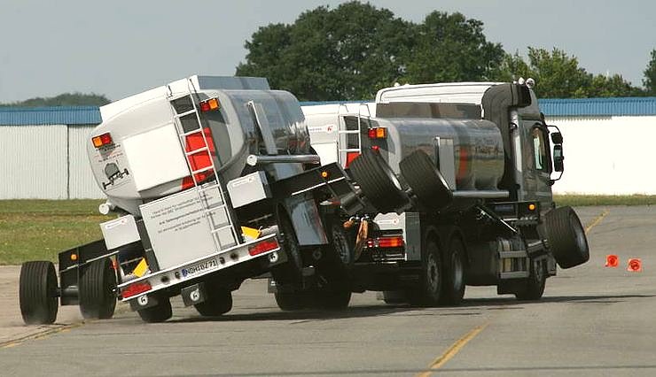 Autor: nnzDas neue Fahrzeug ist der europaweit erste stützradbestückte Tank-Gliederzug mit Drehschemelanhänger für Fahrerschulungen und verfügt über Technik von Morgen. Der Lkw Typ Actros verfügt über einen Abstandsregeltempomat, einen Spurassistent, ESP, eine Rollsperre, eine Wankregelung und einen Notbremsassistent sowie zwei Stützräder. Am Anhänger komplettieren RSS, Reifenluftdrucküberwachung, Achslastanzeige, eine Rückfahrwarneinrichtung sowie vier Stützräder die hochmoderne Fahrzeugausstattung.