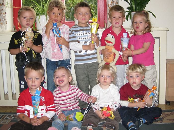 Das sind sie, die kleinen neuen Fröbeljaner des Fröbelkindergartens Domino in Trägerschaft des Jugendsozialwerks. Die Kindergärtnerinnen wollen den Kindern im Kindergarten Wegbegleiter sein, mit dem Ziel, ihnen Hilfe zu geben, um das zu entwickeln, was angelegt ist. Friedrich Fröbel sagte: So, wie man einen Garten unter den Schutz und unter die Sorgfalt erfahrener, einsichtiger Gärtner stellt, so sollen in unserem Kindergarten die edelsten Gewächse, Menschen, Kinder, als Keime und Glieder der Menschheit in Übereinstimmung mit sich und der Natur erzogen werden.(1838)